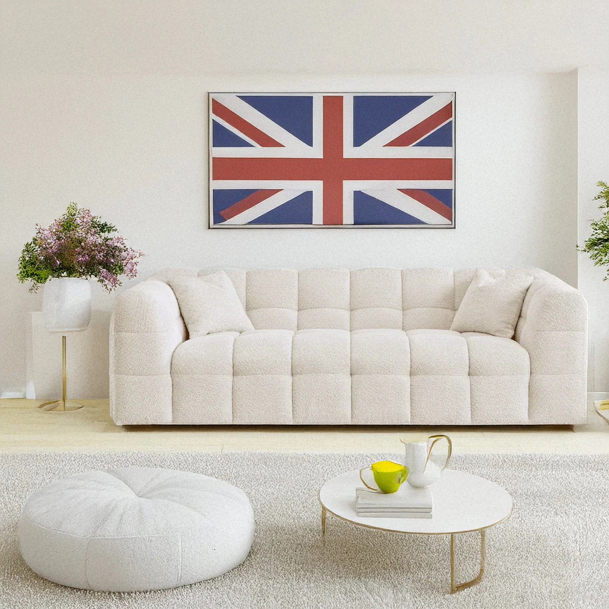 Tribeca Sofa Collection in Oatmeal Beige Bouclé – 3/4 Seater Sofa, Armchair & Footstool